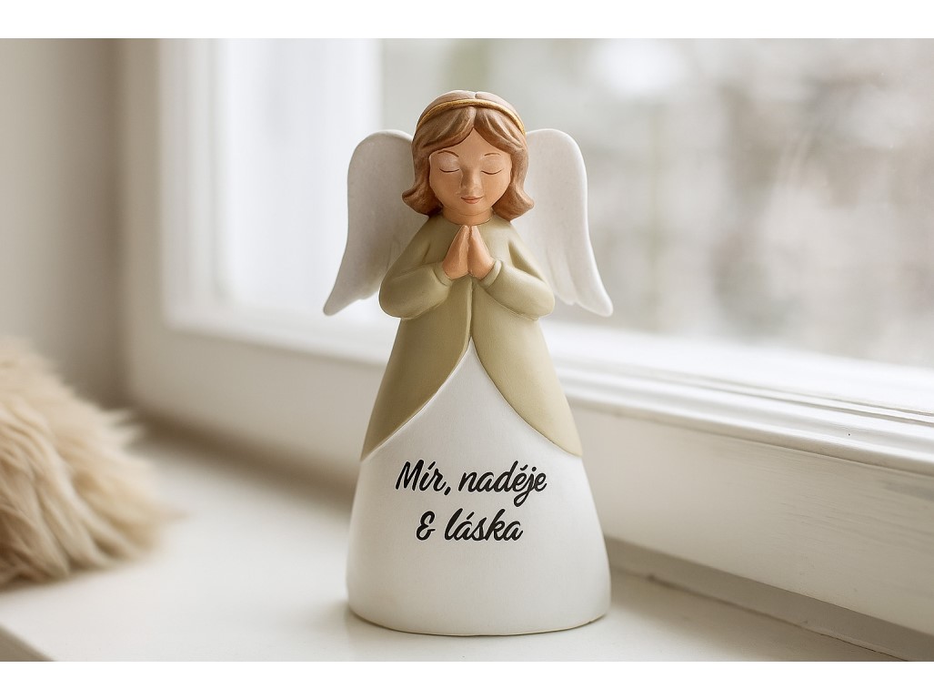 Tento andílek držící přání přináší kouzlo i poselství v jednom. Ve dvoubarevném mixu (bílá a hnědá) dodá hřejivý nádech každému prostoru. Díky decentní velikosti 115 mm je skvělý jako drobná pozornost pro blízké nebo jako andělský doplněk k dárkům. Vhodný pro svátky, narozeniny i obyčejné dny, kdy chcete někomu vykouzlit úsměv.