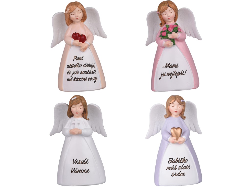 Tento andílek držící přání přináší kouzlo i poselství v jednom. Ve dvoubarevném mixu (růžová a fialová) dodá hřejivý nádech každému prostoru. Díky decentní velikosti 115 mm je skvělý jako drobná pozornost pro blízké nebo jako andělský doplněk k dárkům. Vhodný pro svátky, narozeniny i obyčejné dny, kdy chcete někomu vykouzlit úsměv.