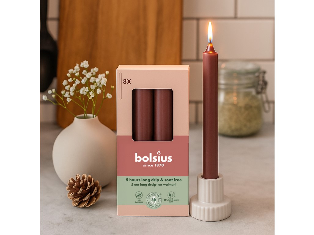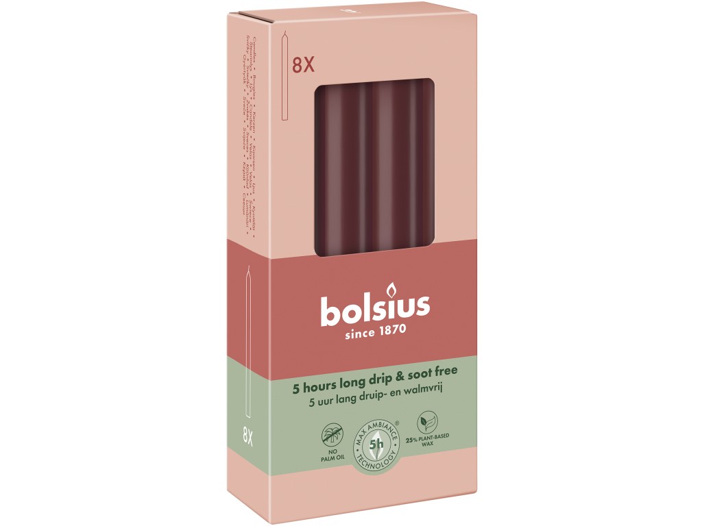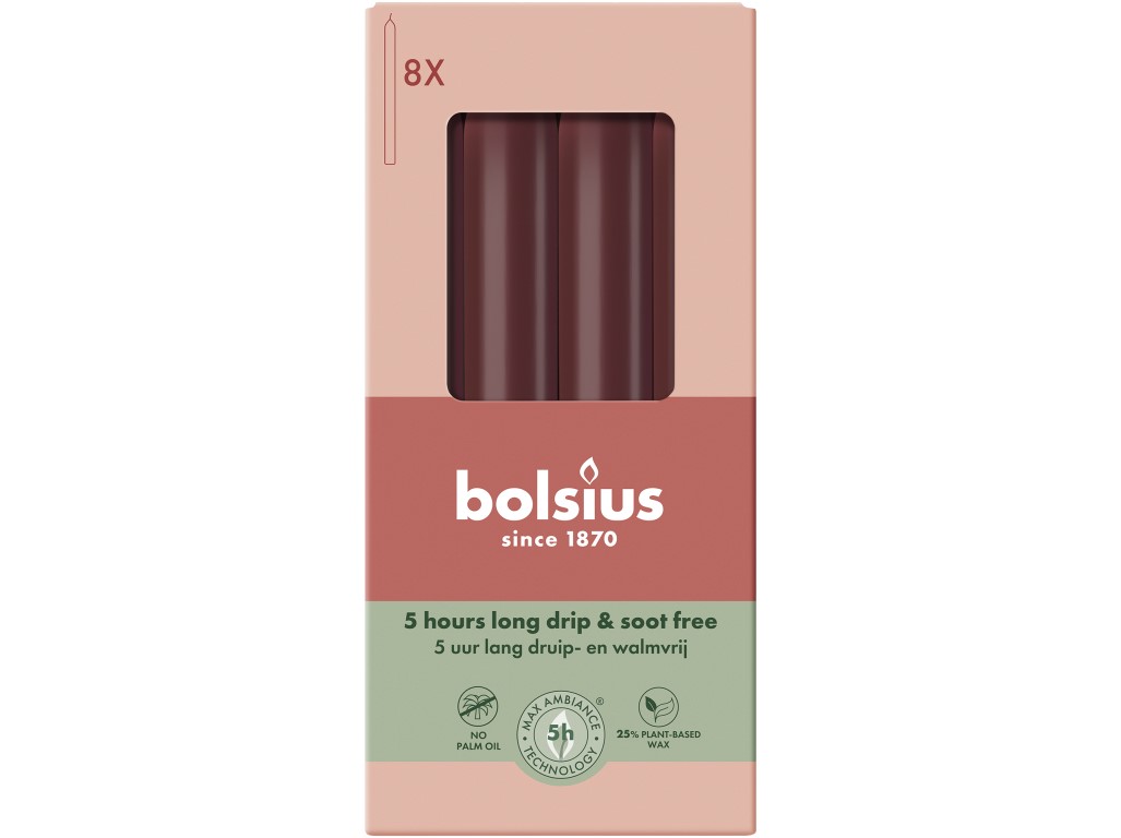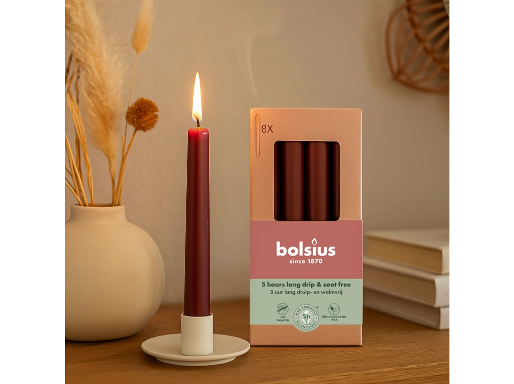 Bolsius Domácí 8ks 20x170 Velvet Red svíčky, bordó