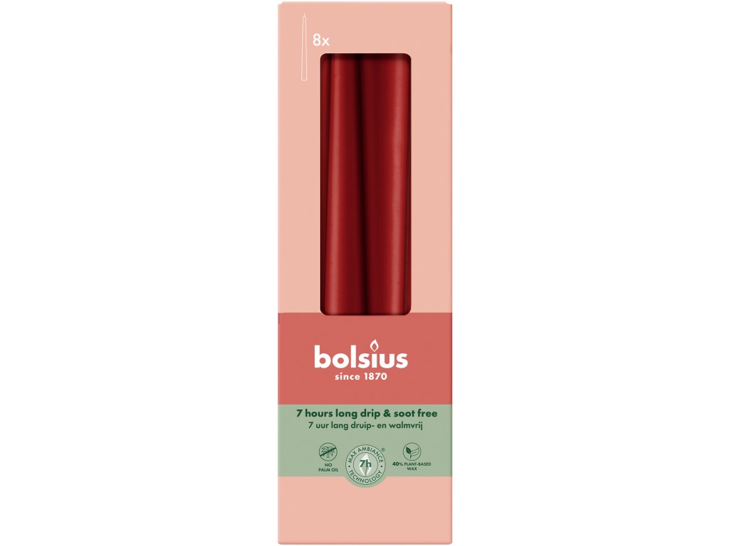 Bolsius Kónická 8ks 24x245 Velvet Red svíčky, bordó