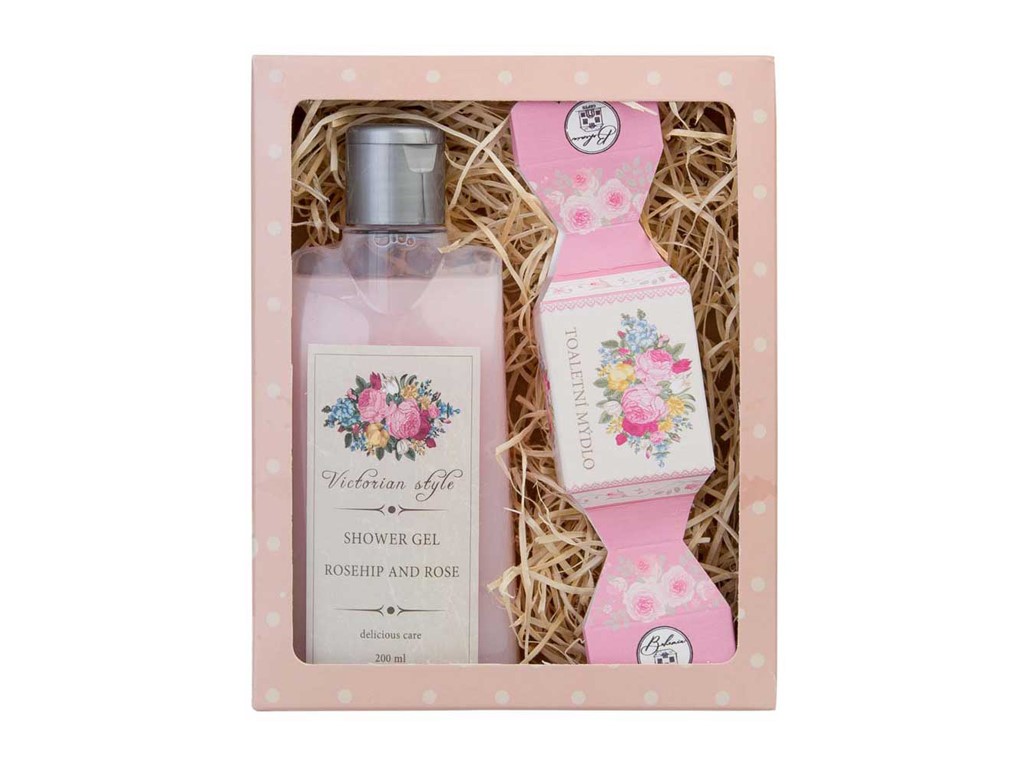 Dárková kosmetická sada pro ženu Victorian Style obsahuje sprchový gel 200 ml a ručně vyráběné mýdlo 30 g s vůní růže v dárkové balení. Kosmetický balíček je milým dárkem pro každou ženu, navíc vyrobeným v ČR.