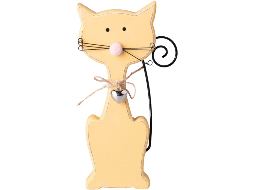 Dekorace dřevěná kočka na postavení ve žluté barvě 125X200mm