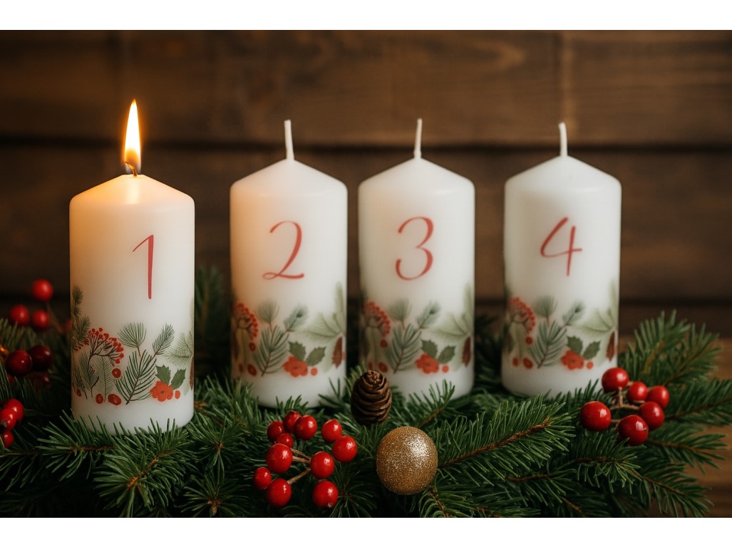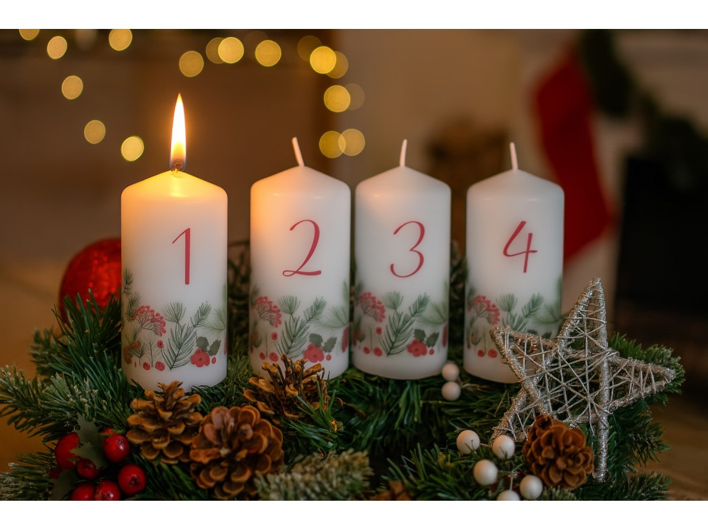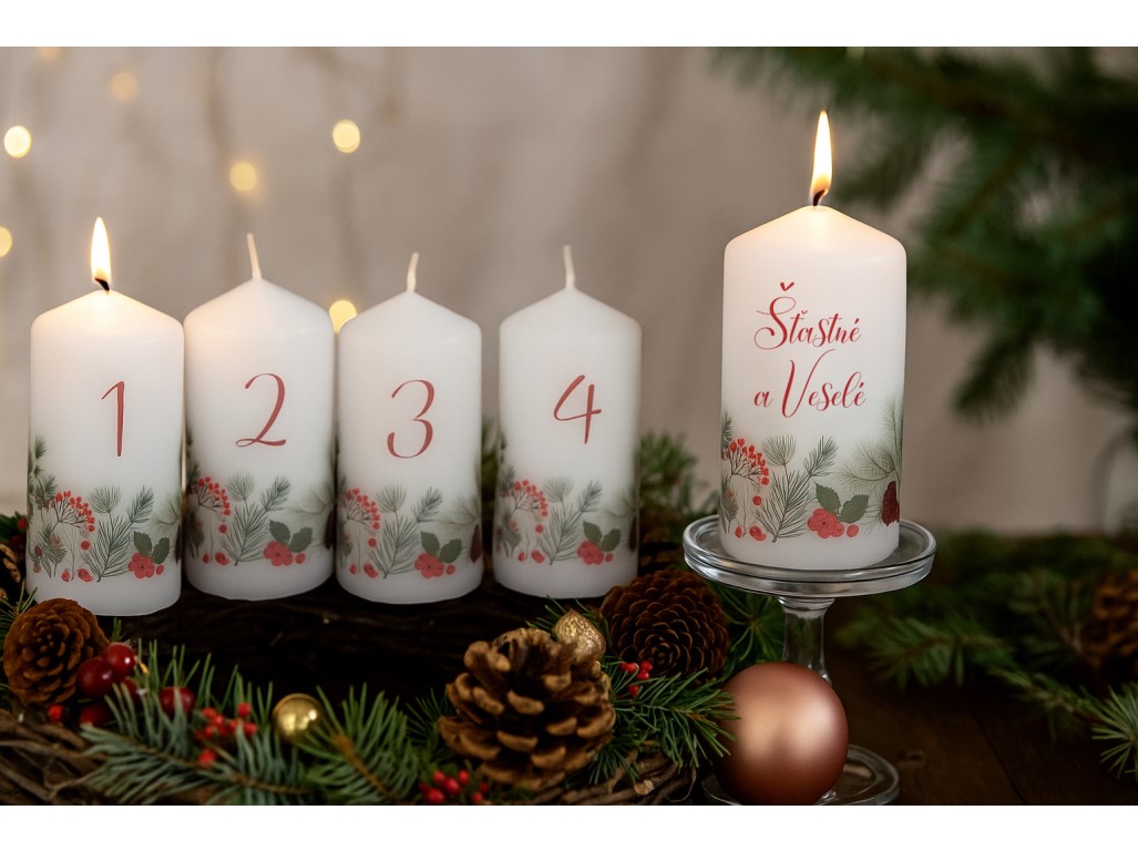 NovinkaSvíčka 50x200 mm s kalendářem Šťastné a veselé180 Kčskladem