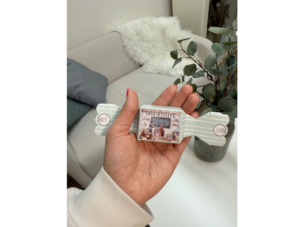 Malé, ale milé poděkování s velkým srdcem. Toto ručně vyráběné mýdlo o hmotnosti 30 g je krásným dárkem pro paní učitelku, kterým vyjádříte vděčnost a potěšíte její smysly. Zabaleno v jemném obalu s nápisem „Paní učitelce“, působí jako milá pozornost na závěr školního roku nebo při jiné slavnostní příležitosti.