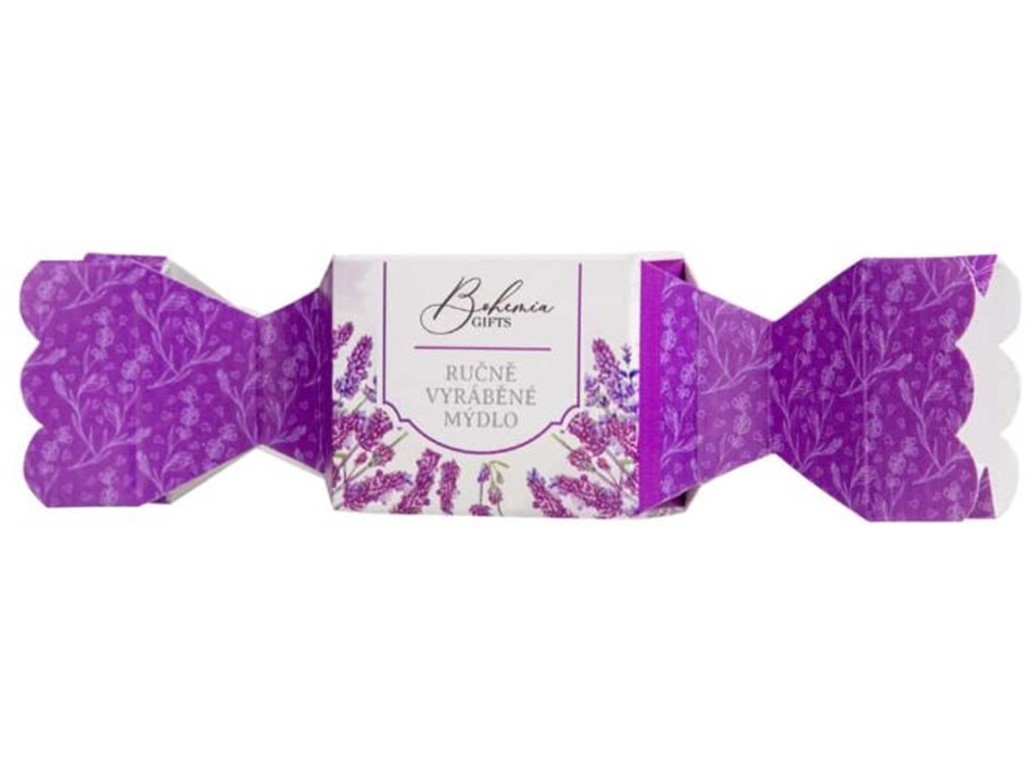 Ručně vyráběné toaletní mýdlo 30 g s glycerinem, bylinným extraktem a vůní levandule v balení jako bonbon. Myje šetrně a účinně pokožku celého těla bez jejího nadměrného vysušování.