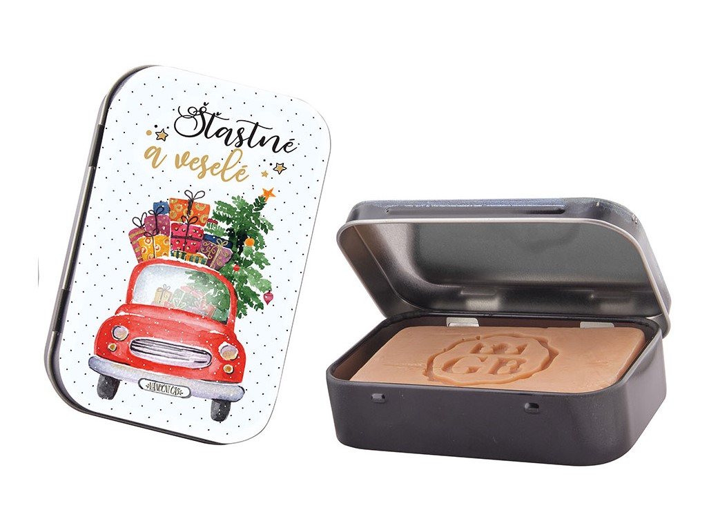 Ručně vyrobené toaletní mýdlo s glycerinem v plechové krabičce. Tuhé mýdlo šetrně myje, nevysušuje pokožku a krásně provoní pokožku.