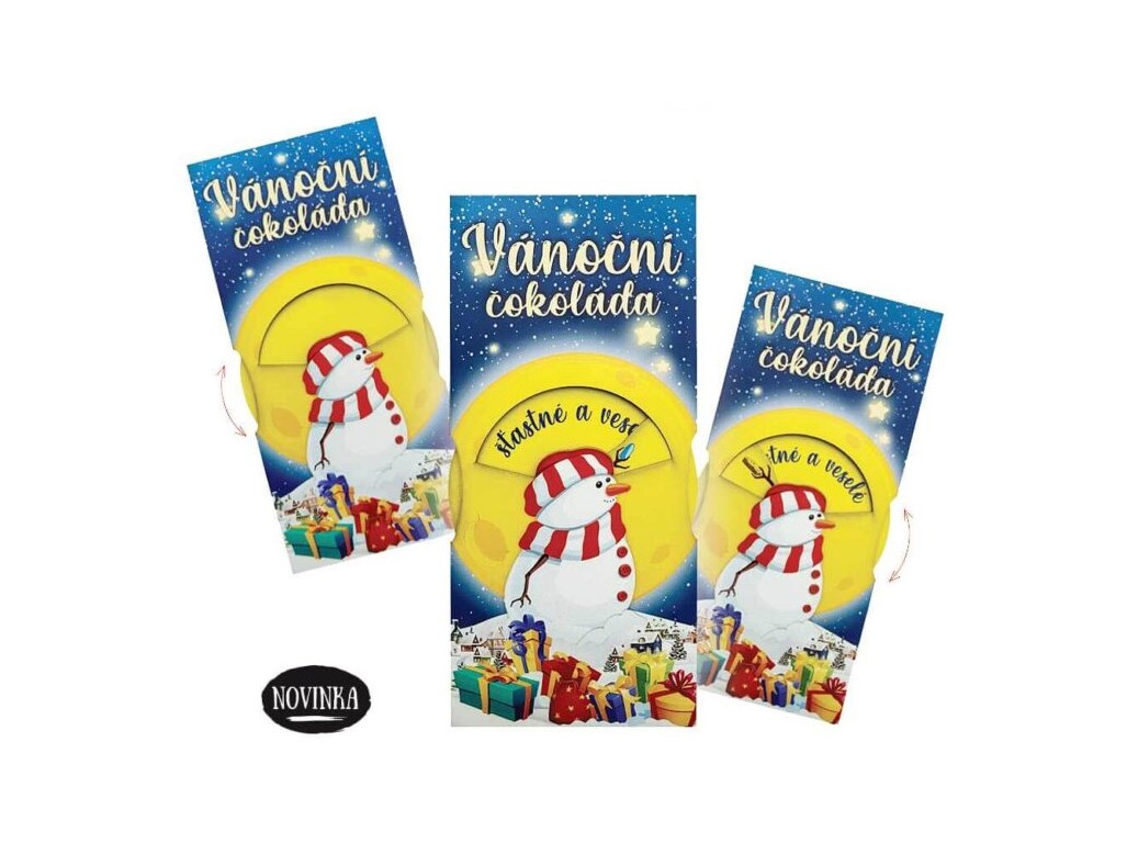 Darujte svým blízkým sladký vánoční dárek s přáním. Dárková čokoláda má speciální interaktivní obal s otočným kolečkem, díky kterému se zobrazí vánoční přání „šťastné a veselé„.