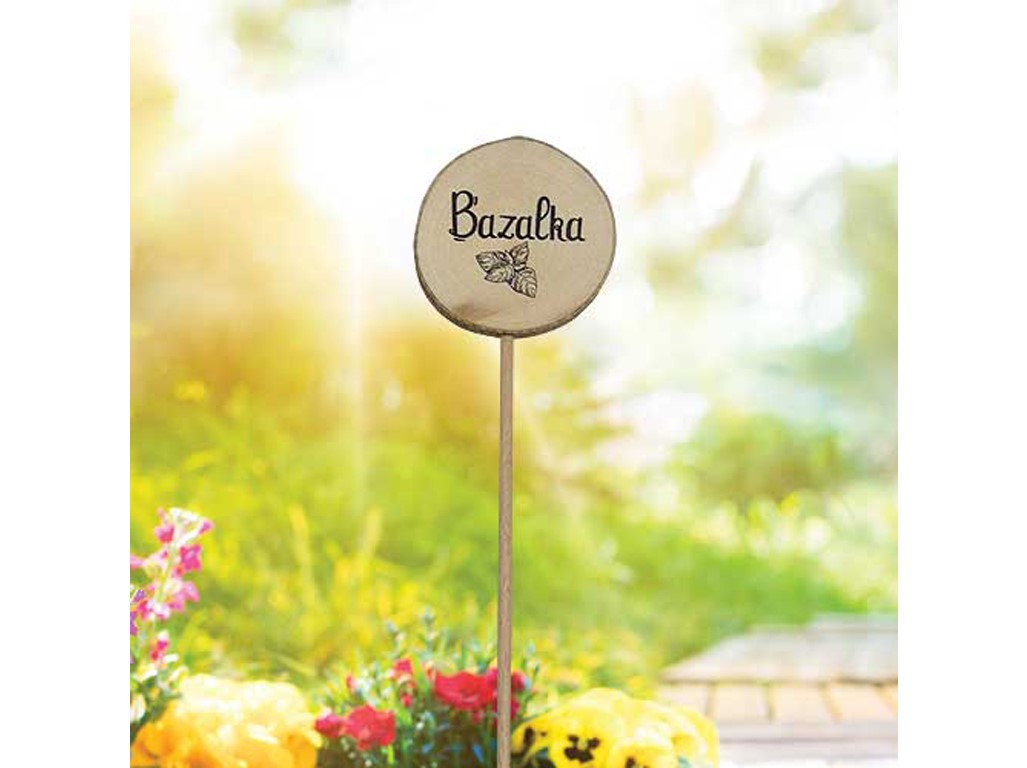 Praktický a stylový dřevěný zápich vám usnadní orientaci v bylinkové zahrádce. Ideální pro květináče i venkovní záhony. Ručně vyrobený zápich je zároveň krásnou dekorací, která dodá vašim rostlinám osobitý šmrnc. Průměr dřevěného kolečka 5 – 8 cm, délka cca 30 cm.