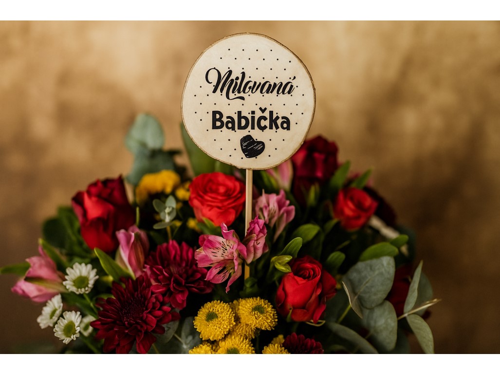 Potěšte svoji babičku krásným dřevěným zápichem s nápisem „milovaná babička“. Skvělý doplněk do květináče, k dárku nebo jen tak pro radost a vyjádření lásky. Průměr kolečka je 5 – 8 cm, výška zapichovátka je přibližně 30 cm.