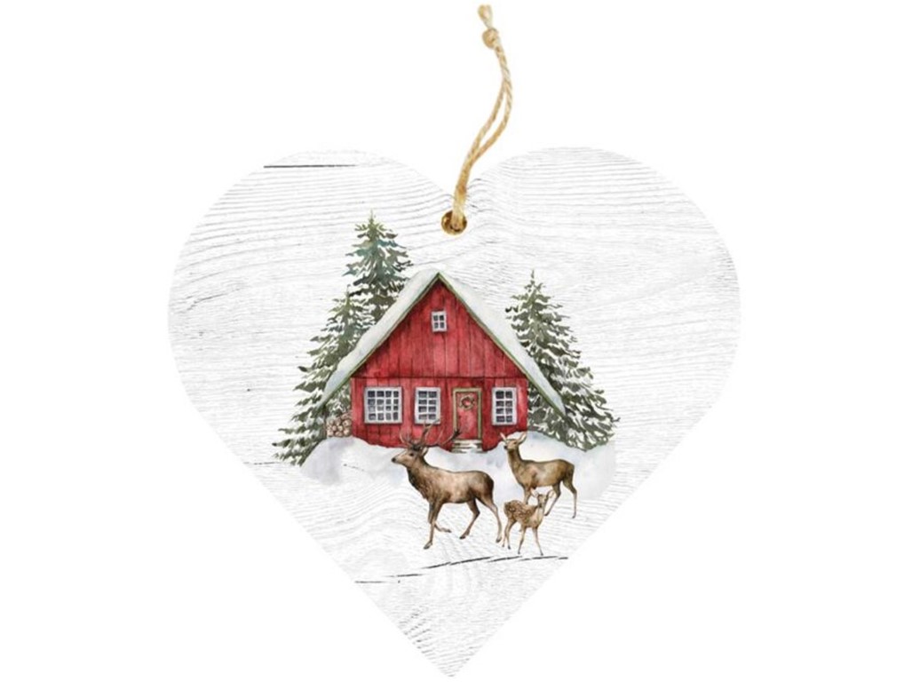 Závěs dřevo srdce 120 mm - Domeček a srnky