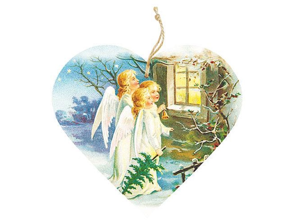 Závěs dřevo srdce 120 mm - Tři andělé