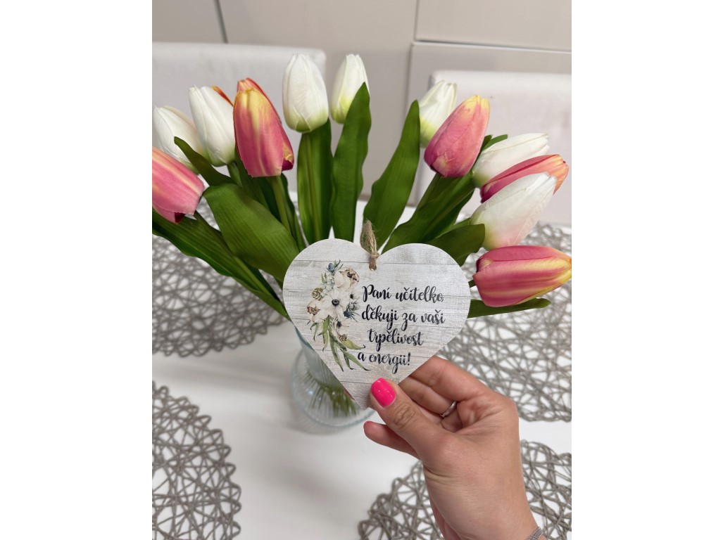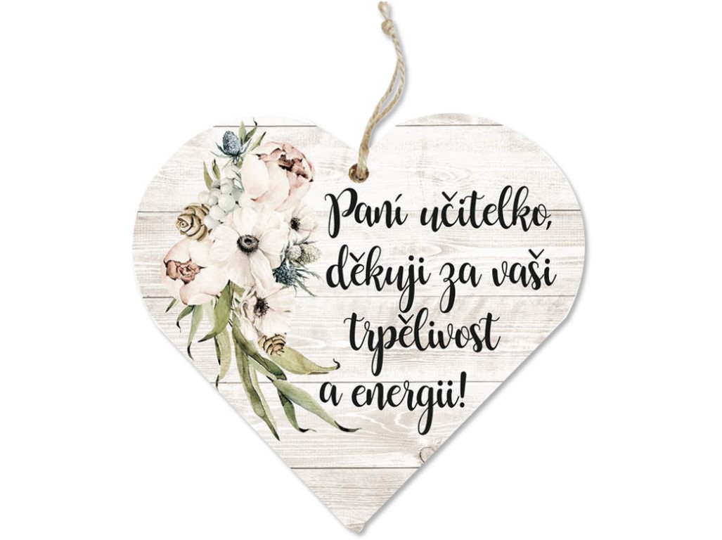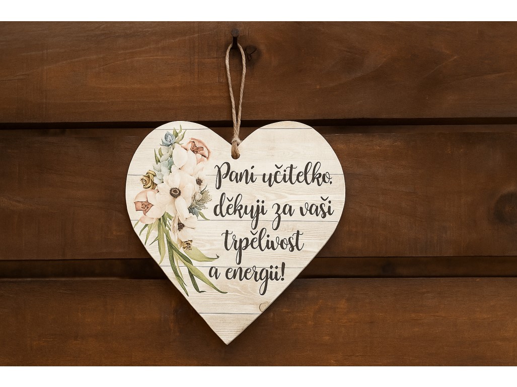 Dřevěné dekorační srdce pro paní učitelku – Paní učitelko, děkuji za vaši energii a trpělivost. Šířka dřevěného srdce je 120 mm, tloušťka 10 mm. Milý dárek pro paní učitelku.
