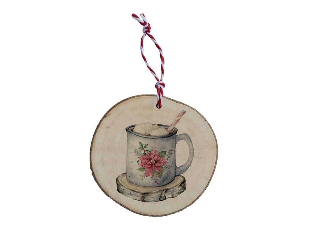 Závěs dřevo Vánoční ozdoba 60 mm - Hrnek s čokoládou