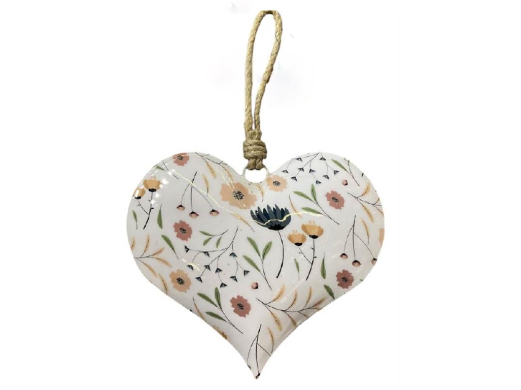 Závěs kov 80x5x70 mm srdíčko s květy, bílá135 Kčnení skladem